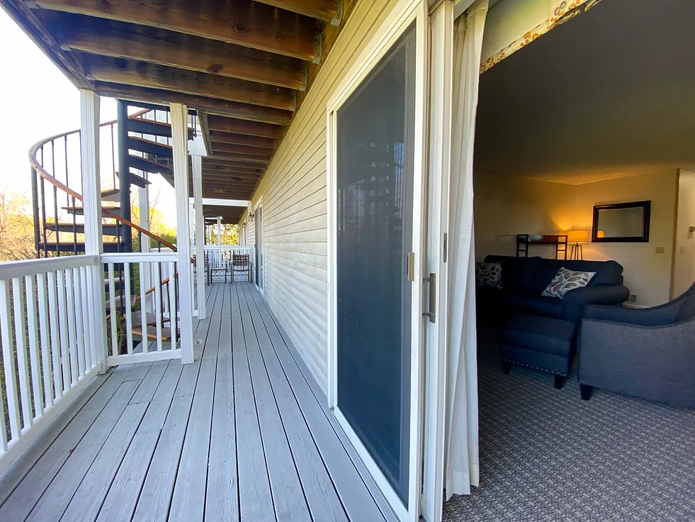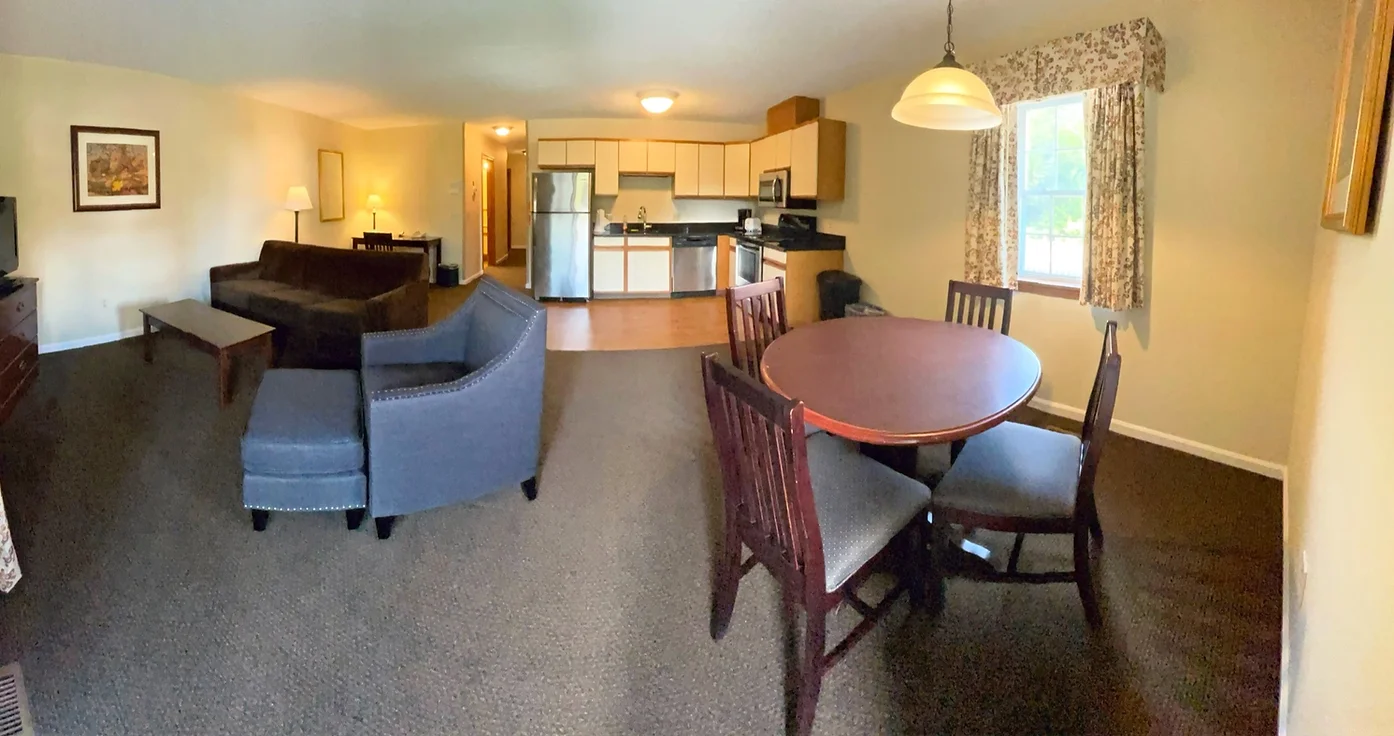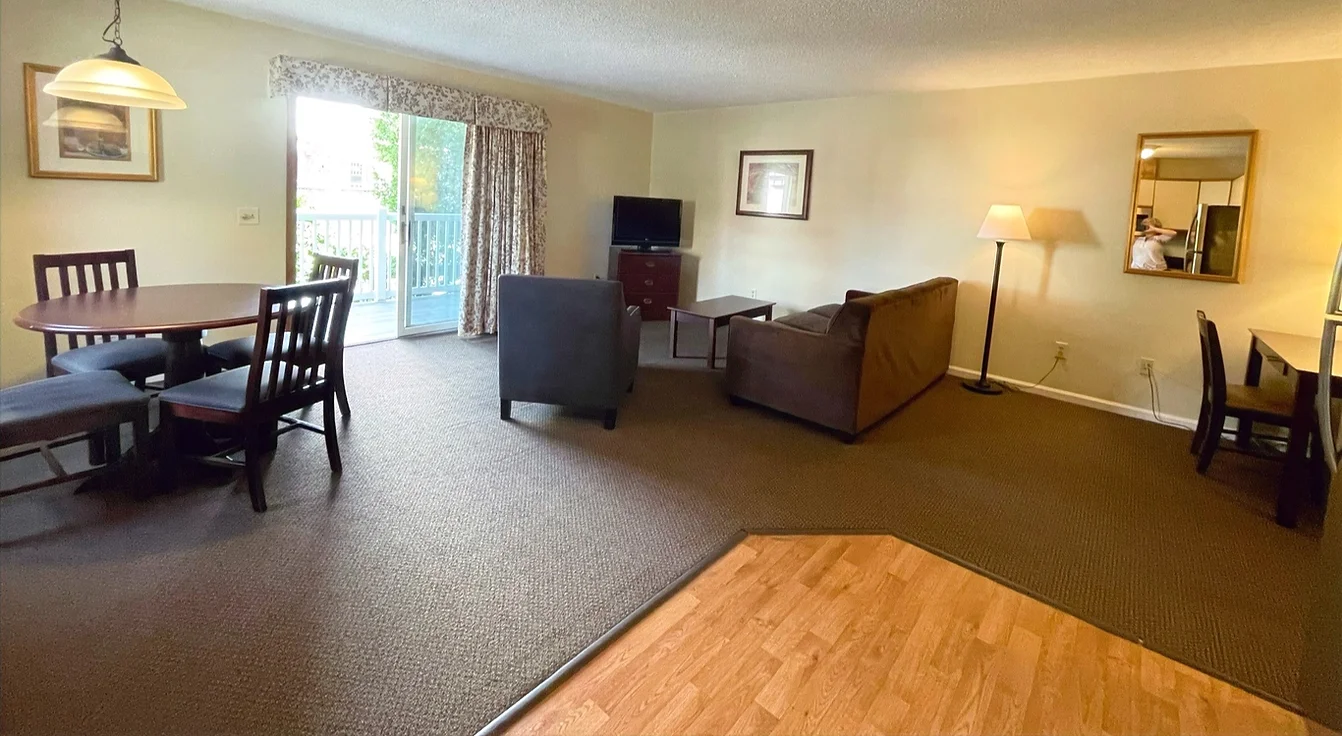 Enjoy the comfort of home while away from home. Each spacious, efficiency (condo-style) extended stay suite includes living room, kitchen, bedroom, full bathroom, and deck. Inquire about our long term stay rates. Stay 3 nights, a year, or more!